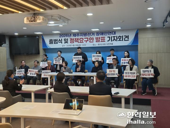 2026 제주지방선거 장애인연대(이하 연대)는 28일 제주도의회 도민카페에서 기자회견을 열고 7대 핵심 정책과 6개 장애 유형별 정책 과제를 발표했다.
