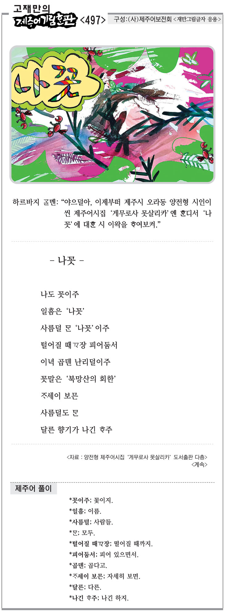 [고재만의 제주어기림혼판] 제주어 풀이(497)