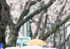 [한라일보] 봄비가 내린 30일 제주시 삼도1동 전농로를 찾은 시민들이 우산을 쓰고 벚꽃길…
