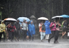 [한라일보] [한라일보] 28일 제주시 절물휴양림을 찾은 탐방객들이 더위를 식히는 소나기가…