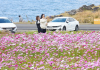 2일 제주시 애월해안도로 인근에 코스모스가 활짝 피면서 지나가는 관광객들의 발길을 붙…