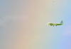 한폭 수채화 같은 무지개 속 항공기