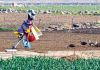 [한라일보] 11일 제주시 한경면 신창리의 한 농경지에 설치된 허수아비 앞에서 흰뺨검둥오…