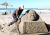 한 조각가가 지난 17일(현지시간) 더반의 한 해변에서 남아프리카공화국 넬슨 만델라 전 대…