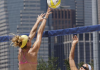 미국 브루클린 맨하튼 중심가에서 열린 미국 비치발리협회 비치발리볼 대회에서 선수들이…