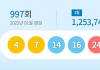 8일 추첨한 제997회 로또복권 1등 당첨번호로 '4, 7, 14, 16, 24, 44'가 뽑혔다. 2등 보너스 번호는…