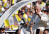 프란치스코 교황이 14일(현지시간) 슬로바키아 동부 프레쇼프에 도착해 신자 등 환영 인파…