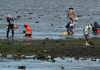 [한라일보] 18일 서귀포시 성산읍 통밭알에서 주민들이 조개잡이를 하고 있다. 강희만기자…
