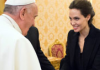 교황과 안젤리나 졸리의 악수