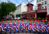 프랑스 파리의 유명 카바레 물랑 루즈의 무용수들이 17일(현지시간) '캉캉' 의상을 입고 오…