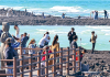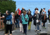 [한라일보] 12일 제주시 이호동 해안을 찾은 관광객들이 바다에서 불어오는 찬바람을 맞으…