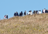 [한라일보] 10일 제주시 애월읍 봉성리 새별오름 정상에 오른 탐방객들이 파란 하늘 아래서…