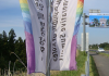 훼손된 환영 현수막들