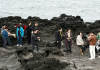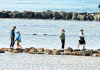 [한라일보] 29일 제주시 이호해수욕장을 찾은 관광객들이 썰물에 드러낸 원담 위를 걷고 있…