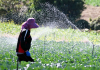 [한라일보] 3일 제주시 한경면 고산리 한 양배추밭에서 농민이 스프링클러를 이용해 물을 …