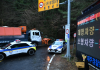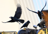 [한라일보] 10일 제주시 아라동에서 교통신호 대기중인 음식물수거 차량에 큰부리까마귀들…