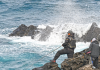 [한라일보] 17일 제주시 애월읍 구엄리 해안에서 낚시꾼들이 강한 바람과 높은 파도 속에서…
